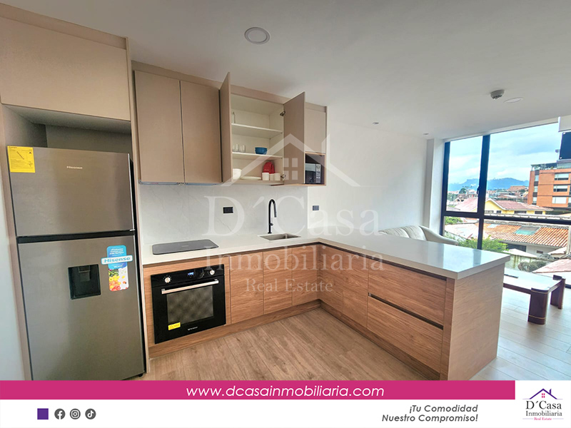 (Renta-D-153) Departamento de lujo Amoblada 2 dormitorios, en Cuenca sector Ordóñez Lasso, 1 garaje y bodega