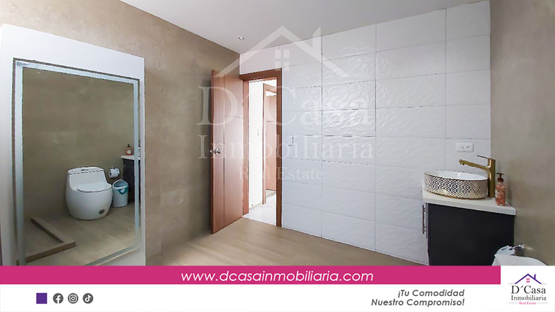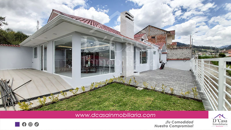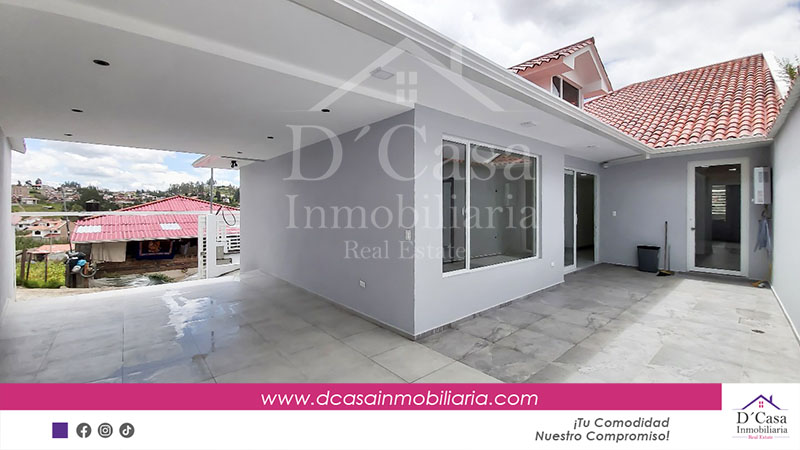 (C-121) Rento Hermosa Casa sin muebles en Baños, sector, 3 dormitorios de una sóla planta 2 garajes, patio y área verde.
