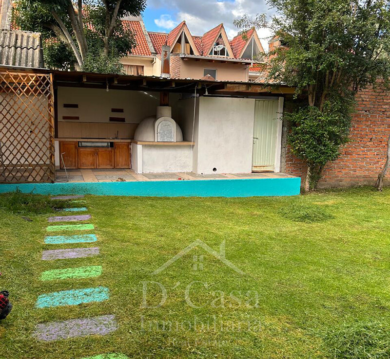 Primera Planta: Sala, Comedor, Cocina, Medio Baño Social, Patio posterior con área verde, Parqueadero para 5 vehículos, Cuarto de empleada con baño, Dormitorio máster con jacuzzi, Área BBQ, Recibidor