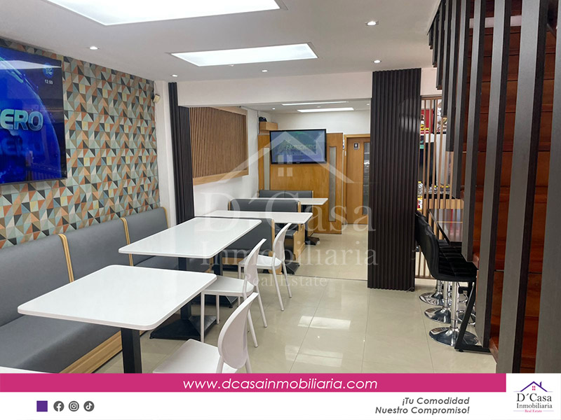Planta baja: Bodega con lavamanos y área de almacenamiento, cocina equipada, 4 parqueaderos frontales, que brindan comodidad tanto a clientes como al personal, calle tarifada para parquear. Si desean el mobiliario es aparte