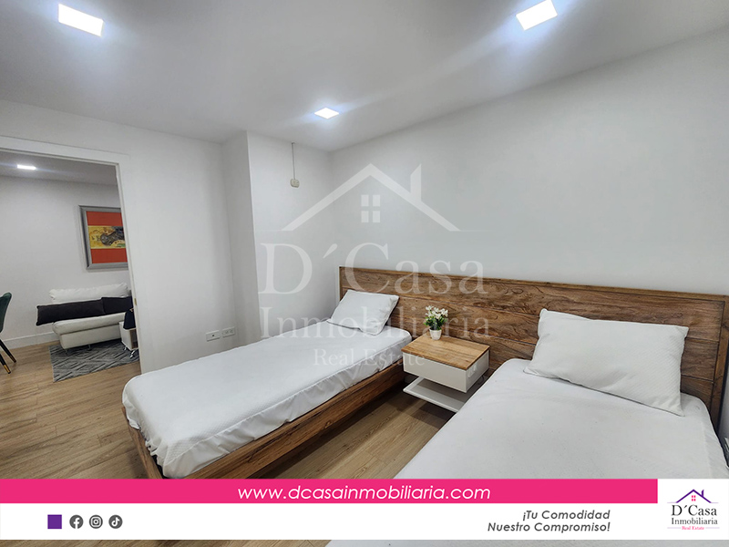 (Renta-D-150) Departamento 2 dormitorios Amoblado en Cuenca sector Ordóñez Lasso, 1 garaje y balcón