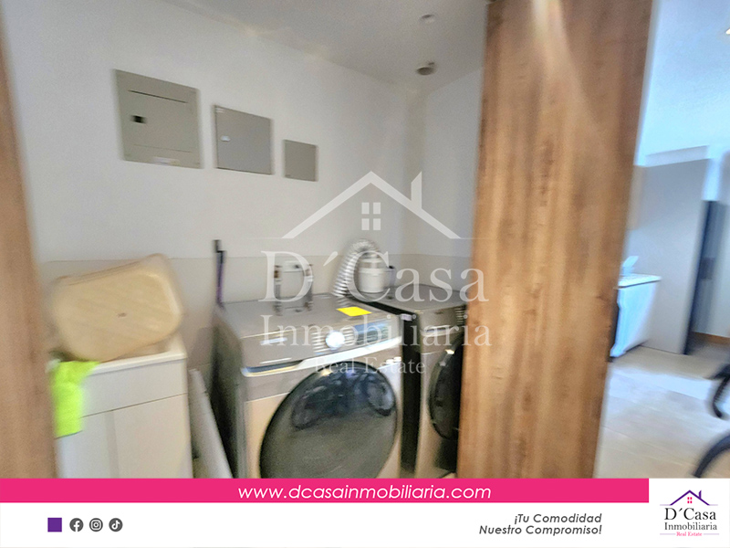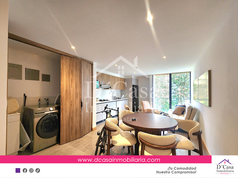 Sala, comedor, cocina, lavandería amplia, 1 Dormitorio con vestidor y baño privado 1 dormitorio, baño completo, terraza, 1 garaje y bodega